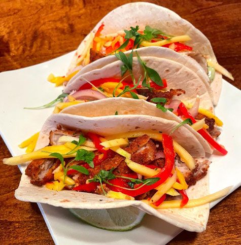 Beer battered fresh mahi fried to perfection topped w/mango pepper slaw & cilantro aioli.